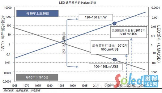 圖:LED通用照明的HAITZE定律