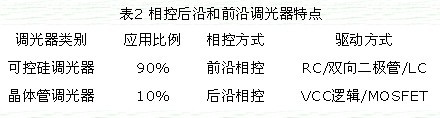 相控后沿和前沿調(diào)光器特點如表2所示。