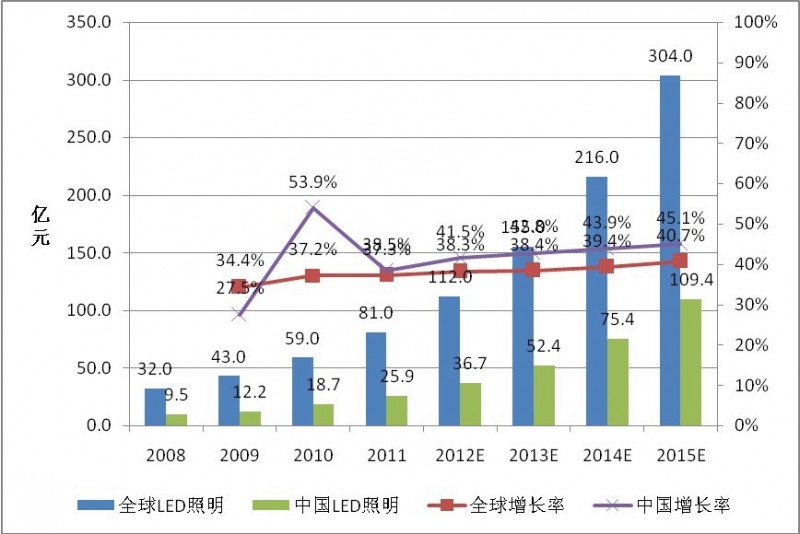 2010年增長至約82億美元,未來幾年隨著各國逐漸開始控制白熾燈,開始使用新能源,使用LED產(chǎn)品,LED的增速會越來越高。國家發(fā)改委、商務(wù)部、海關(guān)總署、國家工商總局、國家質(zhì)檢總局聯(lián)合印發(fā)《關(guān)于逐步禁止進(jìn)口和銷售普通照明白熾燈的公告》,決定從2012年10月1日起,按功率大小分階段逐步禁止進(jìn)口和銷售普通照明白熾燈,LED企業(yè)迎來利好前景。