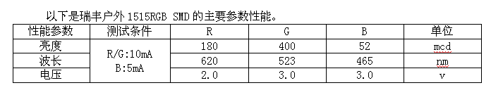 瑞豐戶外1515 RGB SMD器件最大尺寸:1.6*1.7*1.6mm(長*寬*高)。1.6mm的設(shè)計(jì)高度很好的平衡好SMT時容易造成拋料或者貼不平的風(fēng)險(xiǎn),又滿足了戶外應(yīng)用在模組SMT完成后,需要灌膠和加面罩的高度要求。1515SMD采用改性PPA+銅支架的TOP型結(jié)構(gòu)封裝,且全部為純金線焊接工藝。防水等級可達(dá)IPX6 Level,潮濕敏感等級為5a級別。瑞豐光電有信心在客戶按照《產(chǎn)品規(guī)格書》和《瑞豐全彩應(yīng)用手冊》等技術(shù)規(guī)范的指導(dǎo)下可提供3年以上品質(zhì)保證承諾。