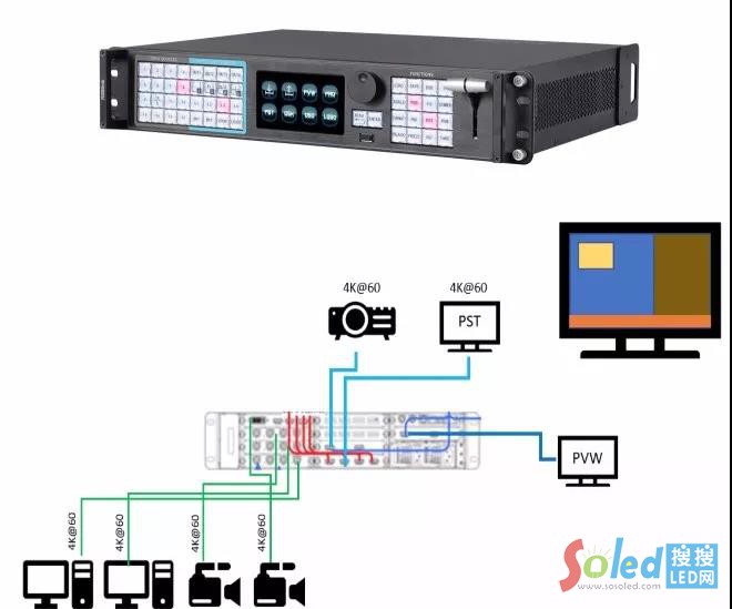 X14支持高達(dá)56路輸入和40路輸出,集成了大型顯示系統(tǒng)所需的一系列視頻處理技術(shù),其中包括4K@60Hz的信號處理如HDMI2.0,DP1.2和12g-SDI。