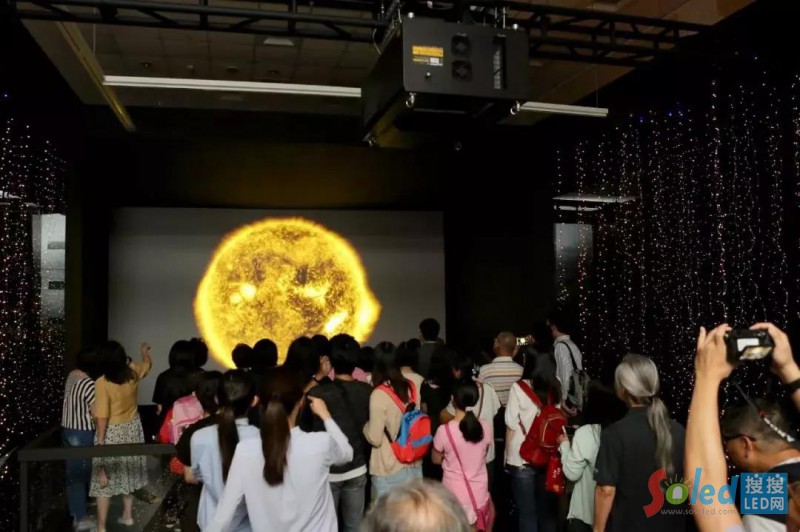 而為了展示出最完美的視覺效果,臺達(dá)除了提供全展場高亮度的節(jié)能投影機(jī)外,還特別將所研發(fā)的全球第一臺亮度可達(dá)25,000流明,堪稱世界最亮的8K激光投影機(jī)(畫面比家里Full HD的電視清晰十六倍左右),將NASA所提供的8K影像完整呈現(xiàn)。讓大家可以近距離地瀏覽栩栩如生、既銳利又清晰的絕美太陽影像,獲得完全不同于以往的觀賞感覺。