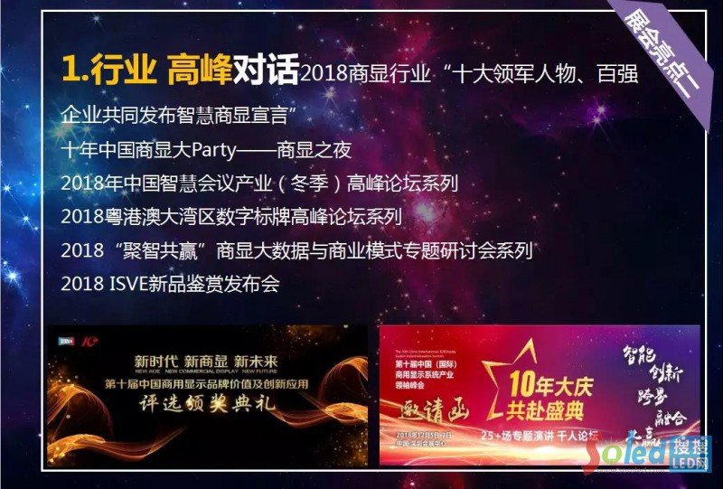 主辦方還將在12月份推出商顯產(chǎn)業(yè)“十大慶典”領(lǐng)袖峰會(huì)系列會(huì)議,更多精彩敬請(qǐng)關(guān)注「2018中國(guó)(國(guó)際)智慧顯示系統(tǒng)產(chǎn)業(yè)應(yīng)用博覽會(huì) 」官方網(wǎng)站。