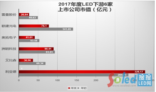 圖2:LED顯示應(yīng)用上市企業(yè)2017年度市值變化