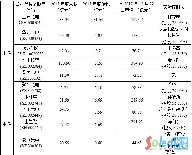 表4:LED行業(yè)上游和中游企業(yè)2017年度經(jīng)營業(yè)績一覽表