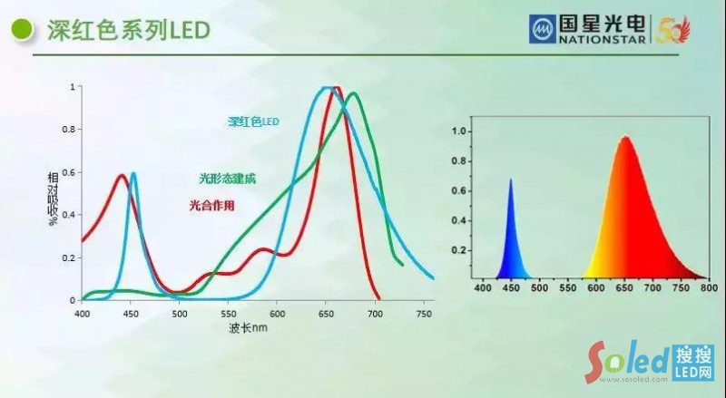 深紅色系列LED,包含藍(lán)光、紅光兩個波段的光譜,藍(lán)光、紅光可促進(jìn)葉綠素吸收,適用于植物的生長需求。