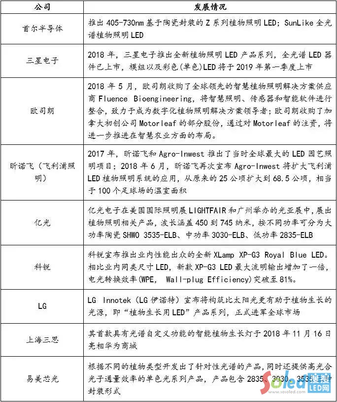 國內(nèi)外公司在LED植物照明領(lǐng)域的發(fā)展情況