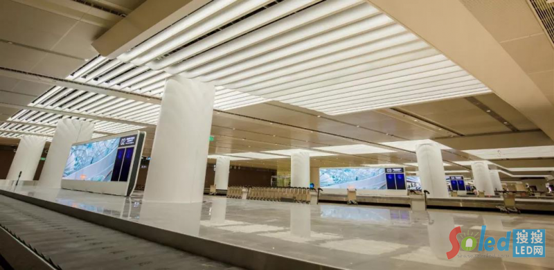 機場國際抵達區(qū)行李帶由八塊十六面LED屏組成,具有高對比度、舒適亮度、超寬視角。