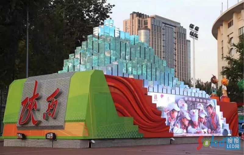 LED顯示屏創(chuàng)意顯示在行業(yè)的應(yīng)用一直就有,創(chuàng)意顯示通過(guò)改變顯示屏的形狀后與顯示的場(chǎng)景進(jìn)行融合。在這次慶典活動(dòng)中湖南彩車用異形顯示屏設(shè)計(jì)了形如紅旗,狀似張家界的奇崛山體,在新疆彩車上則設(shè)計(jì)了石榴屏。LED顯示屏創(chuàng)意顯示在此次慶典上像這樣的例子不勝枚舉。在聯(lián)歡晚會(huì)上,張藝謀導(dǎo)演創(chuàng)造性的運(yùn)用高60米,寬90米的LED網(wǎng)幕打造了世界最大的一面國(guó)旗。世界最大的國(guó)旗在視覺(jué)上給人很大的沖擊力。LED顯示屏在聯(lián)歡晚會(huì)上的創(chuàng)造性應(yīng)用也使得LED顯示屏成為整臺(tái)晚會(huì)的焦點(diǎn)。