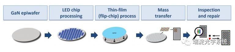 由于尺寸的原因,顯示行業(yè)必須針對microLED開發(fā)一種全新的生產(chǎn)組裝技術,因為microLED使用的芯片結(jié)構(gòu)與傳統(tǒng)的LED或OLED不同,需要新的制造技術。