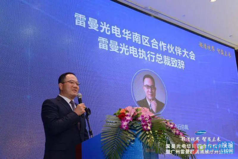 雷曼光電董事長兼總裁李漫鐵致歡迎詞:“廣州是我的第二故鄉(xiāng),我在華南理工大學(xué)無線電專業(yè)度過了充實的四年,成長于廣州包容與創(chuàng)新并存的城市文化,這段經(jīng)歷為后來我創(chuàng)立雷曼光電打下了堅實的基礎(chǔ)。廣州是國內(nèi)少有幾個將超高清作為城市級戰(zhàn)略的都市,大力推進(jìn)“世界顯示之都”、國家超高清視頻應(yīng)用示范區(qū)、國家超高清視頻產(chǎn)業(yè)內(nèi)容制作基地建設(shè)。雷曼光電作為全球領(lǐng)先的超高清LED顯示專家,從六年前開始專研COB先進(jìn)技術(shù),在Micro LED超高清顯示產(chǎn)品的研發(fā)和生產(chǎn)方面走在國際前列。Micro LED是公認(rèn)的終極顯示技術(shù),市場潛力巨大,我們希望與廣大客戶及合作伙伴朋友們共享商機(jī),暢游藍(lán)海。”
