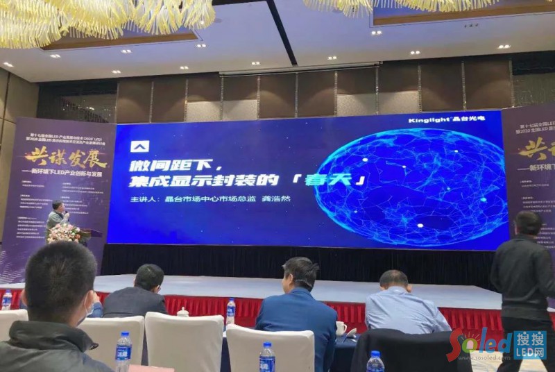 本屆大會以“共謀發(fā)展—新環(huán)境下LED產(chǎn)業(yè)創(chuàng)新與發(fā)展”為主題,特邀知名院士,政府領(lǐng)導(dǎo),產(chǎn)業(yè)聯(lián)盟,協(xié)會專家、領(lǐng)導(dǎo),企業(yè)代表等共同參會,就后疫情時代,在新國際環(huán)境下產(chǎn)業(yè)發(fā)展方向、趨勢等熱點問題進(jìn)行廣泛深入的探討。晶臺顯示市場總監(jiān)龔浩然受邀發(fā)表主題演講《微間距下集成顯示封裝的“春天”》,從后疫情時代下未來顯示市場切入,通過上下游封裝產(chǎn)業(yè)鏈需求的迫切性,分析集成顯示封裝產(chǎn)業(yè)大變革的到來。
