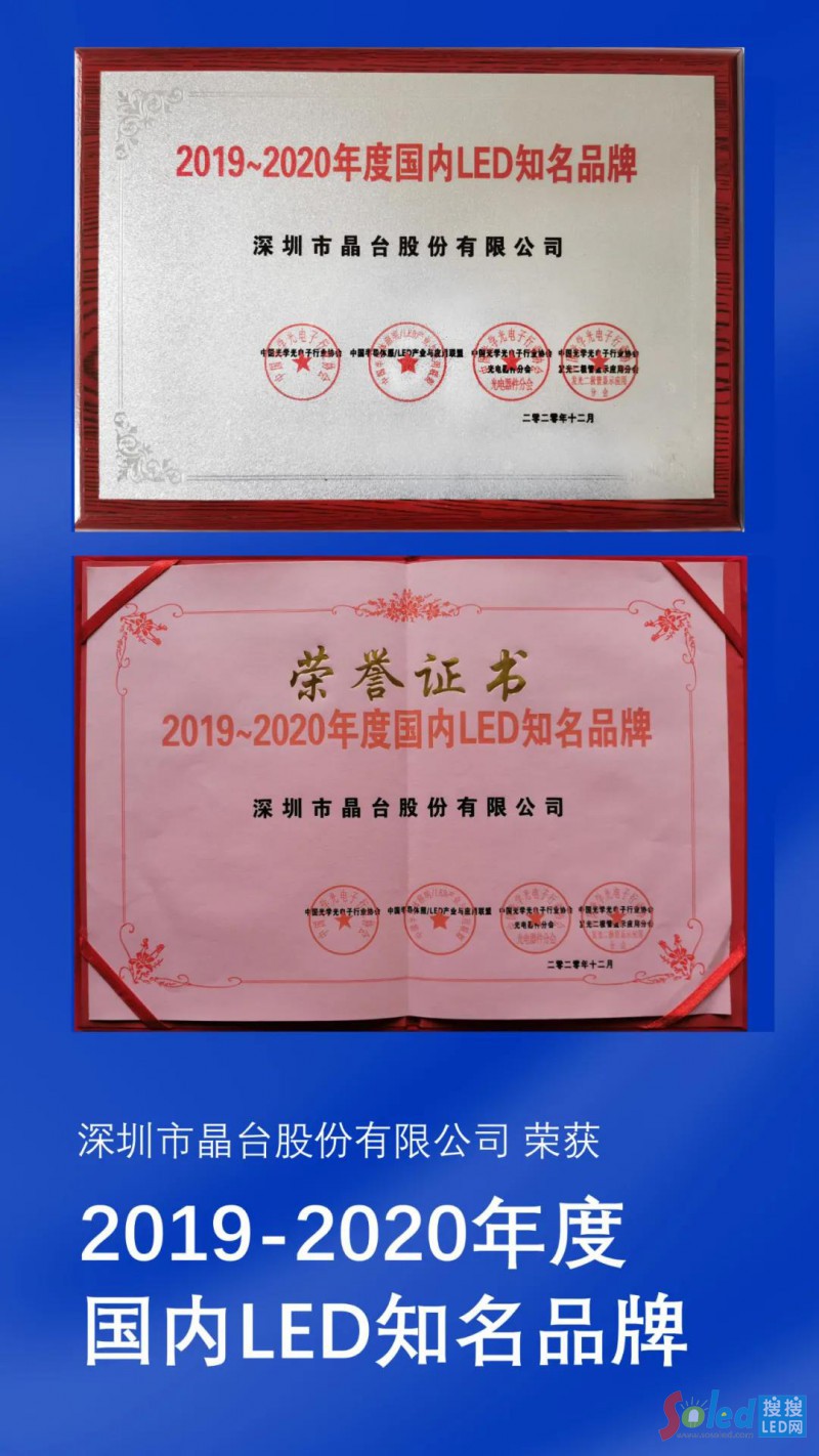 2020’LED大會,晶臺榮獲“國內(nèi) LED 知名品牌”大獎