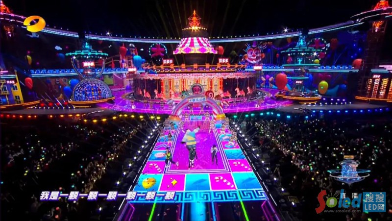 浙江衛(wèi)視在跨年晚會(huì)舞臺(tái)設(shè)計(jì)上,每一年都在探尋新意與突破。今年,極具情懷與科技的“收音機(jī)”造型舞臺(tái),在視覺呈現(xiàn)方面,除了使用大面積的傳統(tǒng)LED顯示屏之外,新亞勝光電魔幻舞臺(tái)系列600余平方米地磚屏更為晚會(huì)現(xiàn)場(chǎng)渲染沉浸互動(dòng)氛圍,讓光影結(jié)合更密切,且在舞臺(tái)表演方面與虛擬技術(shù)等完美融合,營(yíng)造磅礴大氣的現(xiàn)場(chǎng)氛圍。