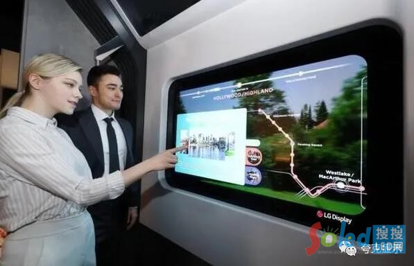 ‘地鐵展區(qū)’可以看到采用高透明度的透明OLED作為地鐵窗戶,不僅可以讓乘客享受外部美麗的風景,還可以掌握地鐵路線以及各地區(qū)信息。