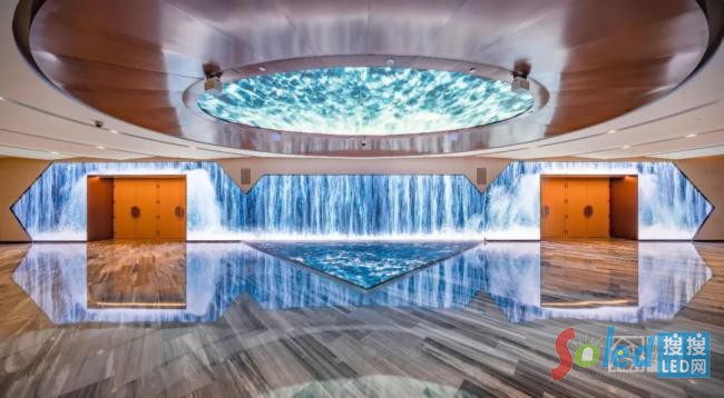 宴會廳前廳: 配備了房頂、墻壁和地面融合組成的巨型交互式屏幕 。使用利亞德VED系列P2.5LED小間距屏幕,不僅能完美地呈現(xiàn)各種特效,還可結(jié)合虛擬現(xiàn)實技術(shù)來使用,例如實時捕捉現(xiàn)場人們的動作、位置、聲音,從而展示不同的信息和效果;亦真亦幻的多維立體效果,耳聽其聲,目觀其形,甚至還可以手觸其身。這些交互式屏幕也為活動的暖場、接待提供了絢爛的場地。