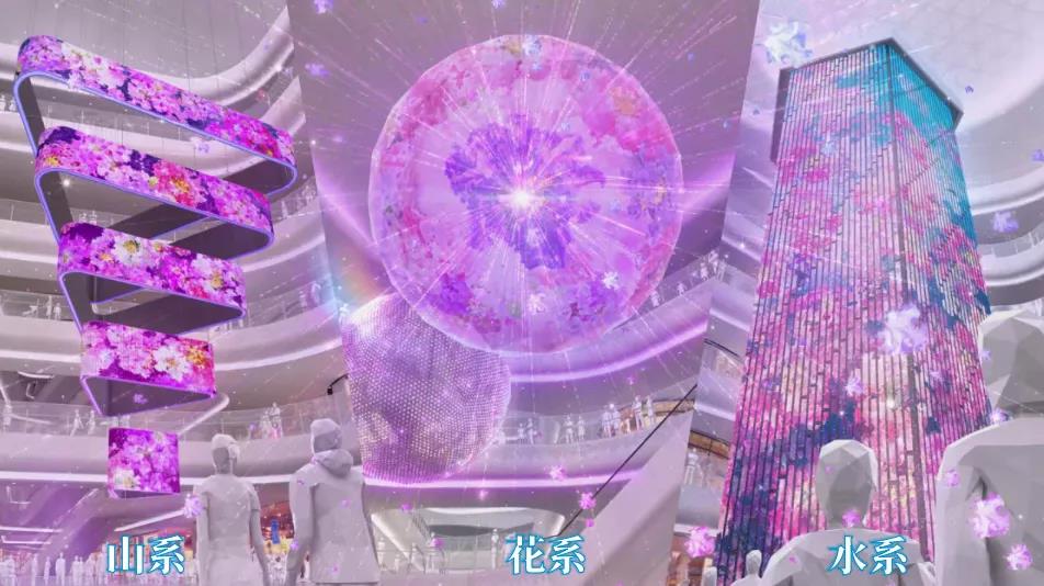項目介紹:2021年8月雷曼·康碩展為佛山王府井紫薇港購物中心打造的總面積達2000㎡,集球形屏、自動化可伸縮立體曲面屏、地磚屏、透明屏和戶內(nèi)外3D視效顯示大屏在內(nèi)的創(chuàng)意顯示系統(tǒng)項目點亮了。雷曼·康碩展和項目設(shè)計單位以“紫薇”及佛山文化元素為主題,為其定制多維創(chuàng)意商業(yè)綜合體LED整體解決方案,以“山系”“水系”“花系”屏+戶內(nèi)戶外屏綜合演繹,打造“生態(tài)×藝術(shù)×科技”歌劇級“山、水、花”互動藝術(shù)空間,及“一步一世界”的樓層主題景觀帶,將自然生態(tài)與商業(yè)功用完美融合。