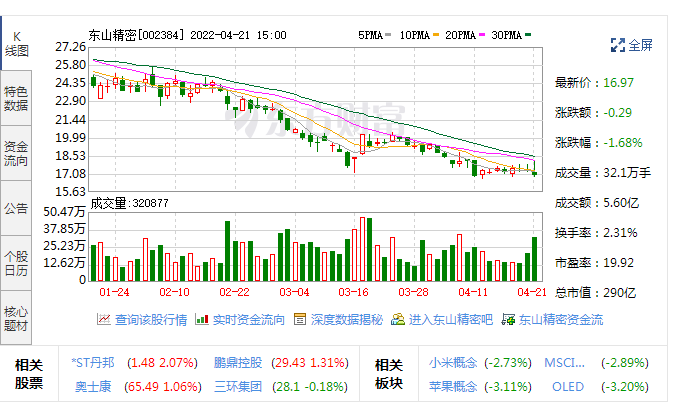 東山精密:2022年第一季度凈利潤約3.64億元 同比增加48.62%