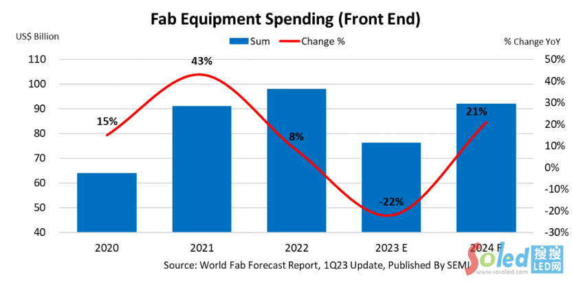 SEMI表示,2023年全球晶圓廠設(shè)備支出的下降,主要源于芯片需求減弱以及消費(fèi)和移動(dòng)設(shè)備庫(kù)存增加。而明年晶圓廠設(shè)備支出的復(fù)蘇,在一定程度上是因?yàn)?023年半導(dǎo)體庫(kù)存調(diào)整結(jié)束,以及高性能計(jì)算(HPC)和汽車領(lǐng)域?qū)Π雽?dǎo)體的需求增加。