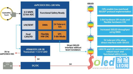 圖示3-大聯(lián)大品佳基于Microchip產(chǎn)品的ISELED汽車氛圍燈方案的方塊圖