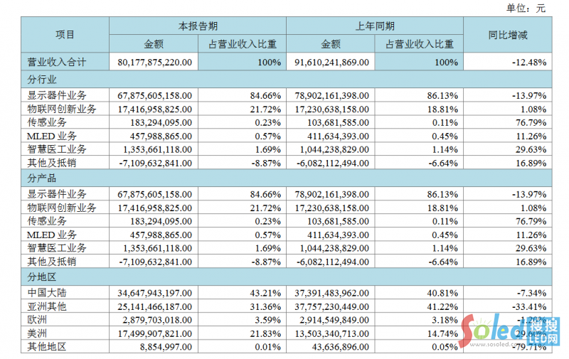 京東方半年報出爐:營收801.78億,凈利7.36億