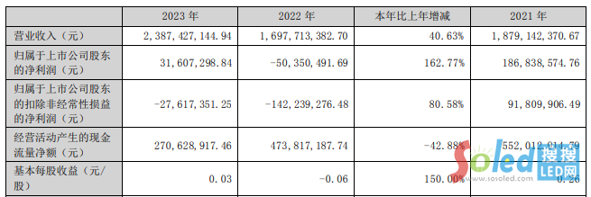 在財(cái)務(wù)數(shù)據(jù)方面,2023年乾照光電實(shí)現(xiàn)營收23.87億,同比增長40.63%;