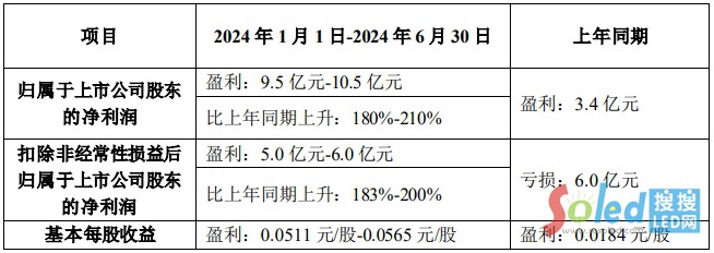 TCL科技預計,公司上半年實現(xiàn)歸母凈利潤9.5~10.5億元,同比增長180%~210%;扣非歸母凈利潤同比扭虧為盈。