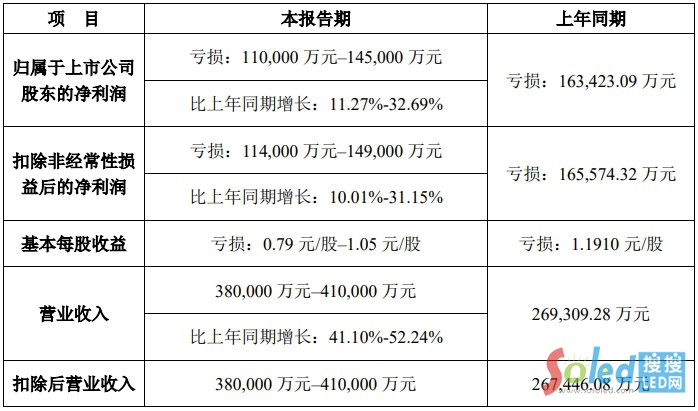 沃格光電預計上半年實現(xiàn)營收9.5~11.5億元,同比增長22.87%~48.74%;凈利潤持續(xù)虧損。