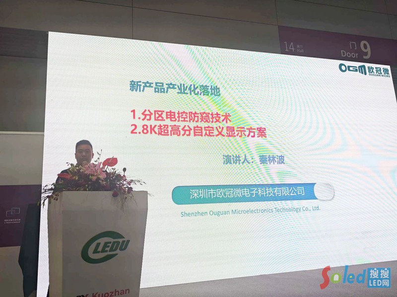 深圳市歐冠微電子科技有限公司總經(jīng)理秦林波做《超高分自定義顯示方案與分區(qū)電控防窺技術》的報告