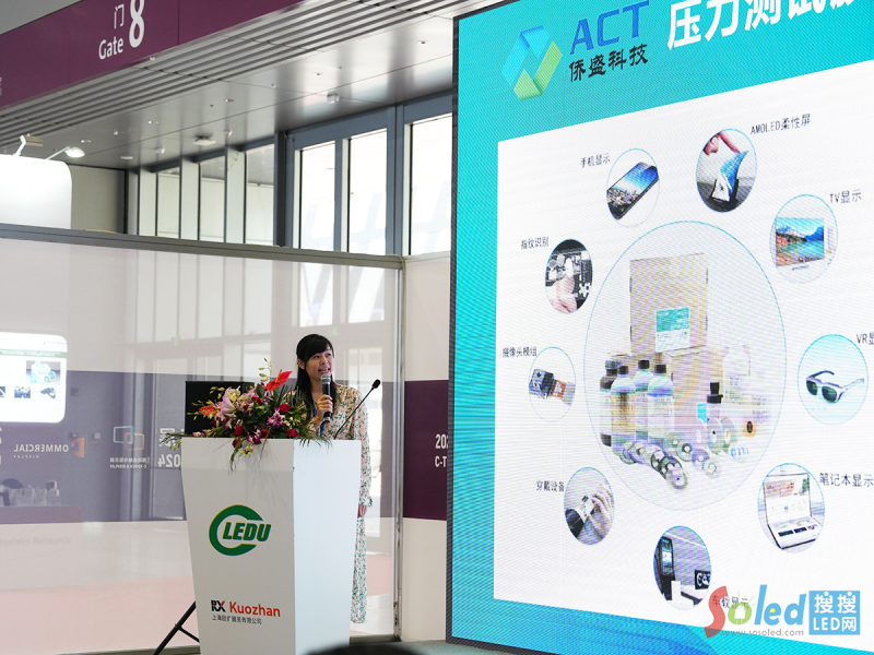 廣東僑盛新材料科技有限公司董事長助理禤芳蘭做《壓力測試膜的微顯示技術應用》的報告