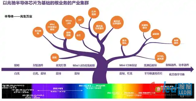 而LED芯片主要襯底為藍(lán)寶石,該技術(shù)與GaAs、SiC、GaN等化合物半導(dǎo)體工藝技術(shù)同源。遵循襯底技術(shù)的同源性和全光譜技術(shù)的可覆蓋性,兆馳半導(dǎo)體近年來持續(xù)向化合物半導(dǎo)體企業(yè)轉(zhuǎn)型升級,將芯片的應(yīng)用范圍向光通信、射頻器件、功率器件等領(lǐng)域延伸,打開化合物半導(dǎo)體無限的想象空間。