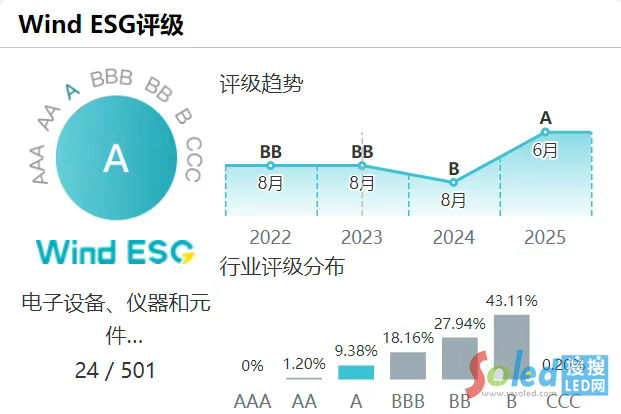 在全球加速邁向可持續(xù)發(fā)展的時代背景下,ESG(環(huán)境、社會與治理)已成為衡量企業(yè)高質量發(fā)展能力的重要指標。近日,國內權威金融服務機構Wind(萬得)公布最新ESG評級結果——洲明科技首份ESG報告,即榮獲“A”級評級,在整個電子設備、儀器和元件行業(yè)躋身前5%行列!彰顯了公司在綠色發(fā)展、社會責任和治理實踐方面的務實投入與領先實力。