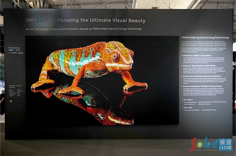其中“無極 Infinity MLED超高畫質(zhì)解決方案”引人關(guān)注。憑借領(lǐng)先的智能算法與圖像處理引擎,控制系統(tǒng)、智能算法、全灰階校正與PWM+PAM混合驅(qū)動(dòng)IC的深度融合,讓MLED顯示屏獲得卓越表現(xiàn):細(xì)膩的光影層次、流暢的動(dòng)態(tài)畫面,讓“真實(shí)之美”躍然眼前,推動(dòng)MLED向萬億級(jí)商業(yè)及消費(fèi)級(jí)市場(chǎng)邁進(jìn)。