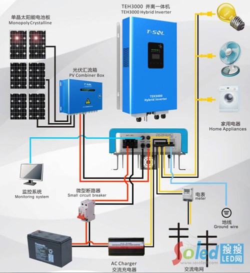 光伏離網(wǎng)發(fā)電系統(tǒng)工作原理圖