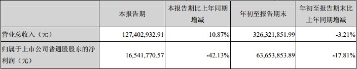 乾照光電10月21日發(fā)布2014年第三季度報告,公司第三季度(7-9月)實現(xiàn)營業(yè)收入為1.27億元,比上年同期增長10.87%,歸屬于上市公司股東的凈利潤為1654.18萬元,較上年同期下降42.13%。合并前三季度(1-9月)營業(yè)收入為3.26億元,比去年同期下降3.21%;歸屬于上市公司股東的凈利潤為6365.39萬元,比去年同期下降17.81%。