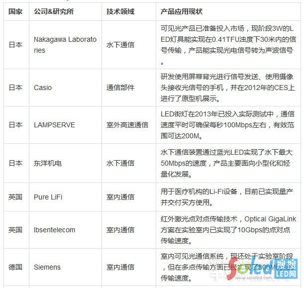 全球LIFI企業(yè)發(fā)展現(xiàn)狀如何?一張表讓你“窺清”