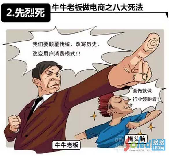隨著互聯(lián)網(wǎng)的應(yīng)用逐漸加深,電商渠道逐漸成為LED照明行業(yè)銷售的重要渠道之一,然而在做電商的同時(shí),并不是一股腦的做法,一不小心就成為先烈企業(yè),下面看看不得不知的電商的八大死法,給LED燈飾企業(yè)做個(gè)提醒!