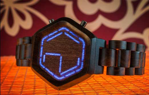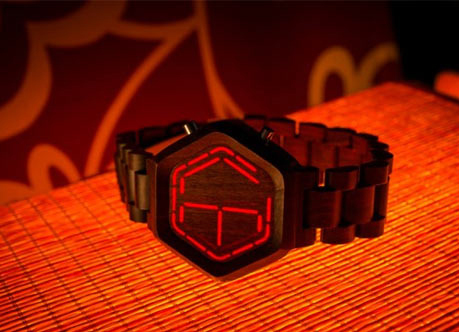 早在2011年Tokyoflash 就推出了名為“kisai night vision”的LED腕表,但那款外殼是不銹鋼材質(zhì)。近日,Tokyoflash 又推出其全木頭款式,LED隱藏在木質(zhì)表盤的下方,外圈12格標(biāo)識(shí)小時(shí),中間的變形數(shù)字標(biāo)識(shí)分鐘。該款LED腕表可選黑檀木或楓木材質(zhì),而LED的顏色也有紅、綠、藍(lán)三種,表的售價(jià)是109美元。