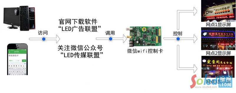 二、休閑會所LED門頭屏微信wifi控制系統(tǒng)原理圖