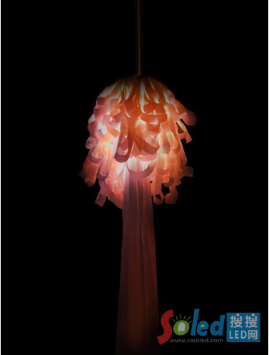 阿根廷藝術(shù)總監(jiān) Paula Benvegnu和英國(guó)設(shè)計(jì)師 Tristan Cochrane在巴塞羅那合作設(shè)計(jì)了這個(gè)與眾不同的水母燈。水母燈代表海洋,設(shè)計(jì)師有意營(yíng)造一種獨(dú)特的夢(mèng)幻般的超現(xiàn)實(shí)氛圍。燈具是用200-300米的彩帶手工制作的,利用光的不同強(qiáng)度和顏色創(chuàng)造出一個(gè)微妙的感覺,像是來到了潘朵拉的盒子里。