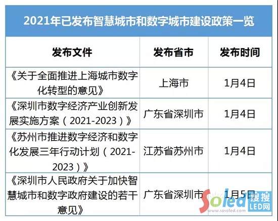 2021年已發(fā)布智慧城市和數(shù)字城市建設(shè)政策一覽表