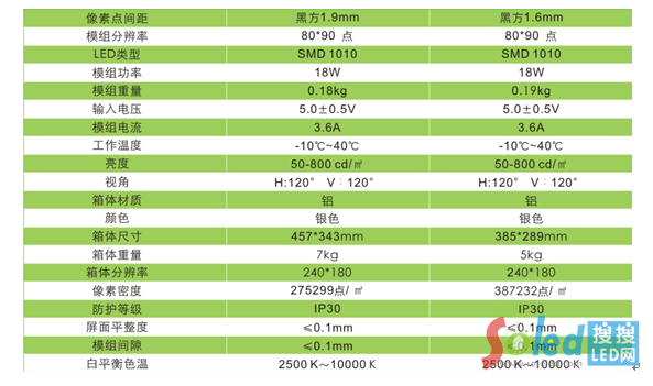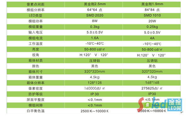 會(huì)議顯示用黑金剛P2.5、P1.9產(chǎn)品參數(shù)