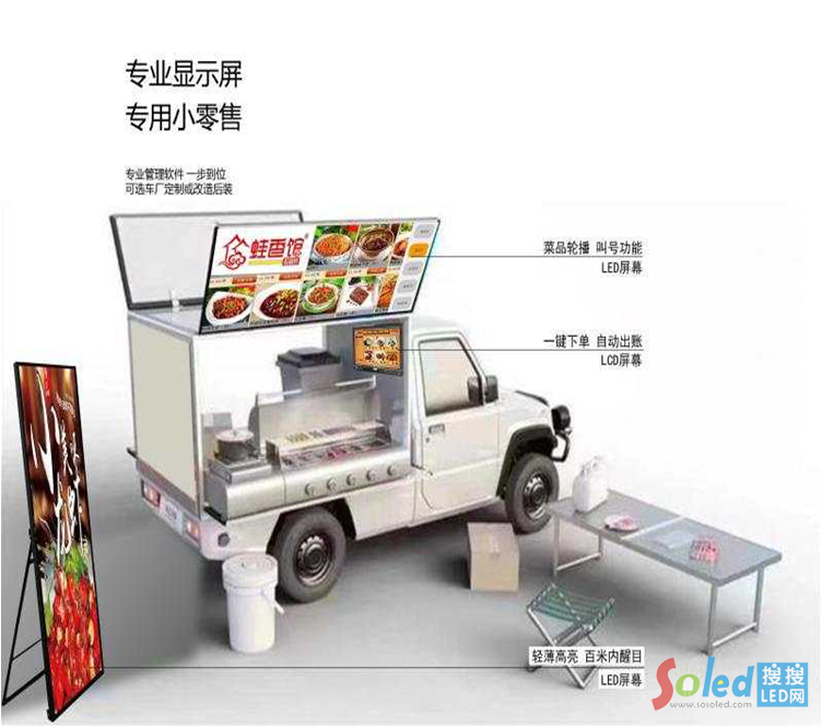 一塊亮眼的LED顯示屏,無疑會給我們的攤位大大地加分,吸引眼球,此外還能在拉攏顧客的同時(shí),進(jìn)行產(chǎn)品相關(guān)信息的展示,也可兼具廣告效應(yīng)。地?cái)偵唐罚T類眾多,產(chǎn)品多樣,價(jià)格從兩元的口杯到幾十元一件的衣服;擺地?cái)偟牡囟,環(huán)境也多種多樣;擺攤的硬件更是千奇百怪,有基本固定的攤點(diǎn),也有移動式。攤位可以是一塊塑料膜片,幾張報(bào)紙,簡易手推車,也可以是一輛百萬豪車。但擺地?cái)傋鳛橐粋(gè)特殊的應(yīng)用場景,LED顯示屏要想在其中發(fā)揮功用,就得符合地?cái)偨?jīng)濟(jì)發(fā)展的需要。